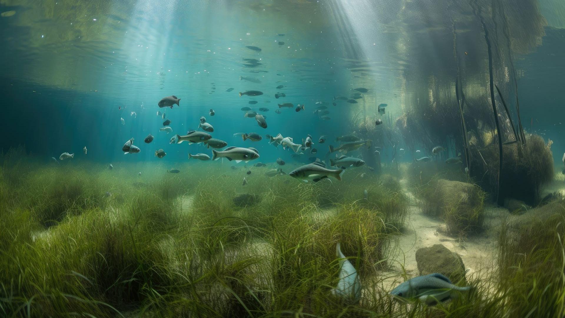 - Les producteurs primaires sont des végétaux, - plantes aquatiques, algues -, par leur photosynthèse, l'énergie solaire qu'ils reçoivent leur permet d'élaborer leur matière vivante en puisant directement dans l'eau et les sédiments, les éléments nutritifs nécessaires.